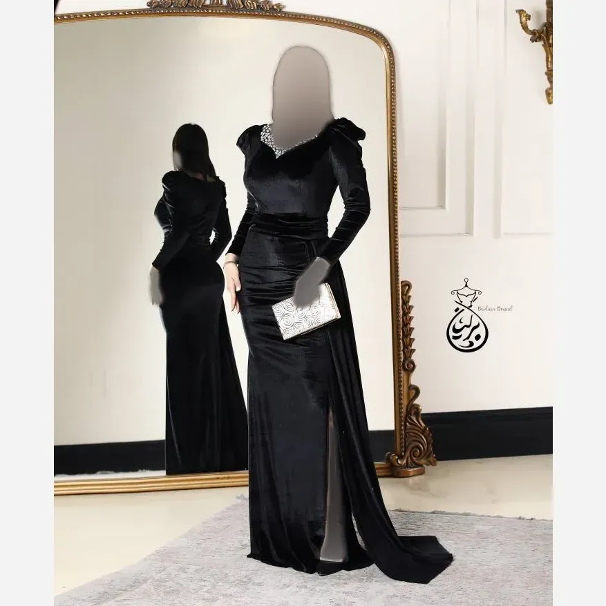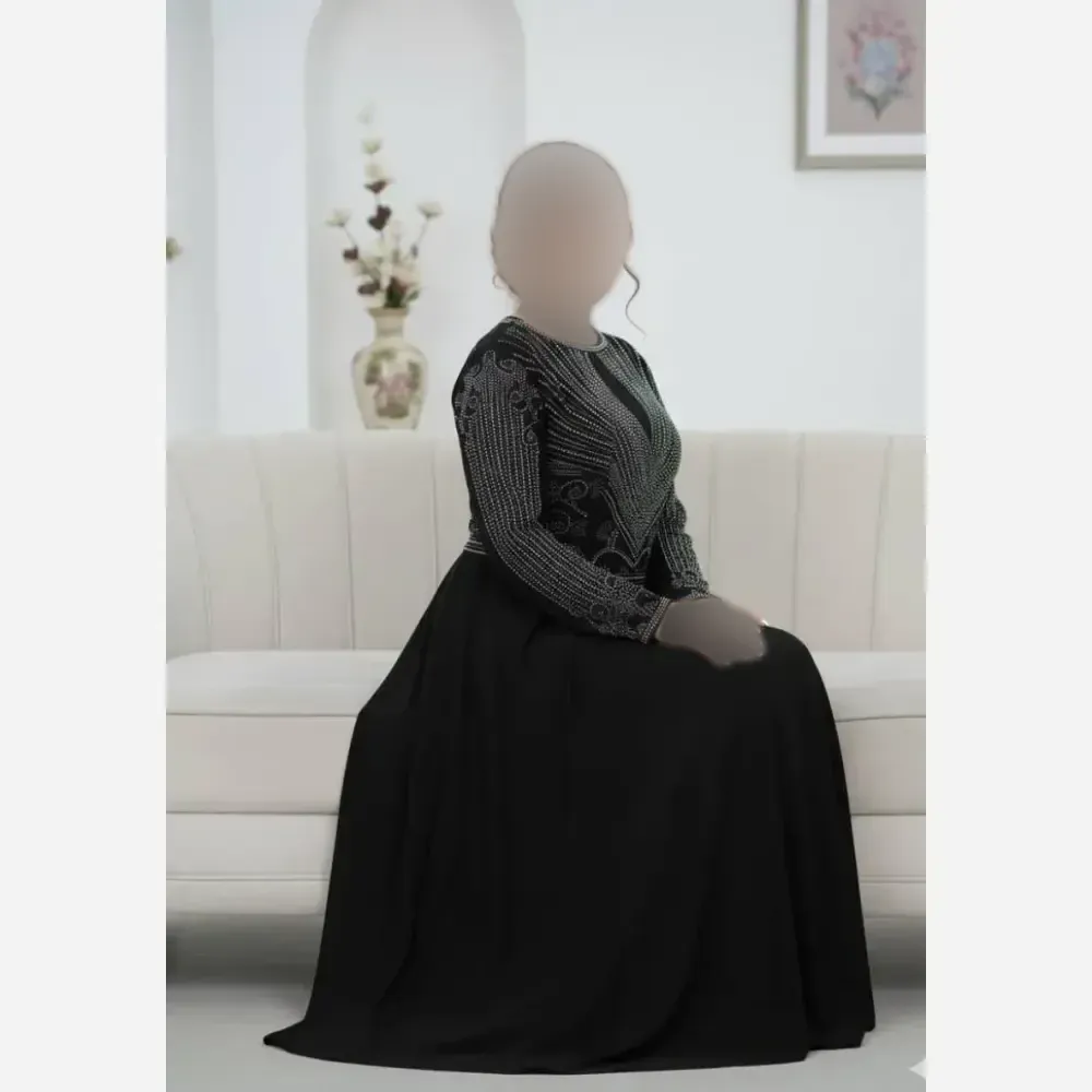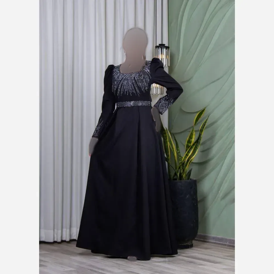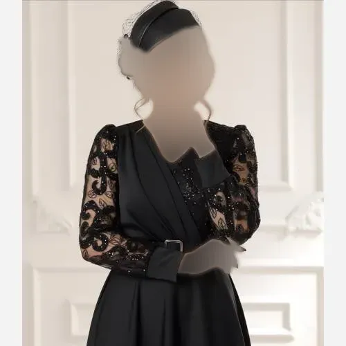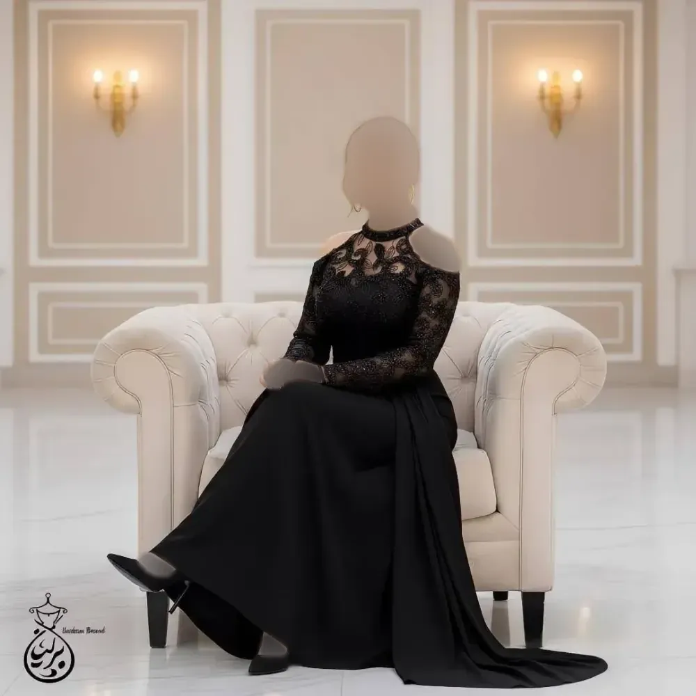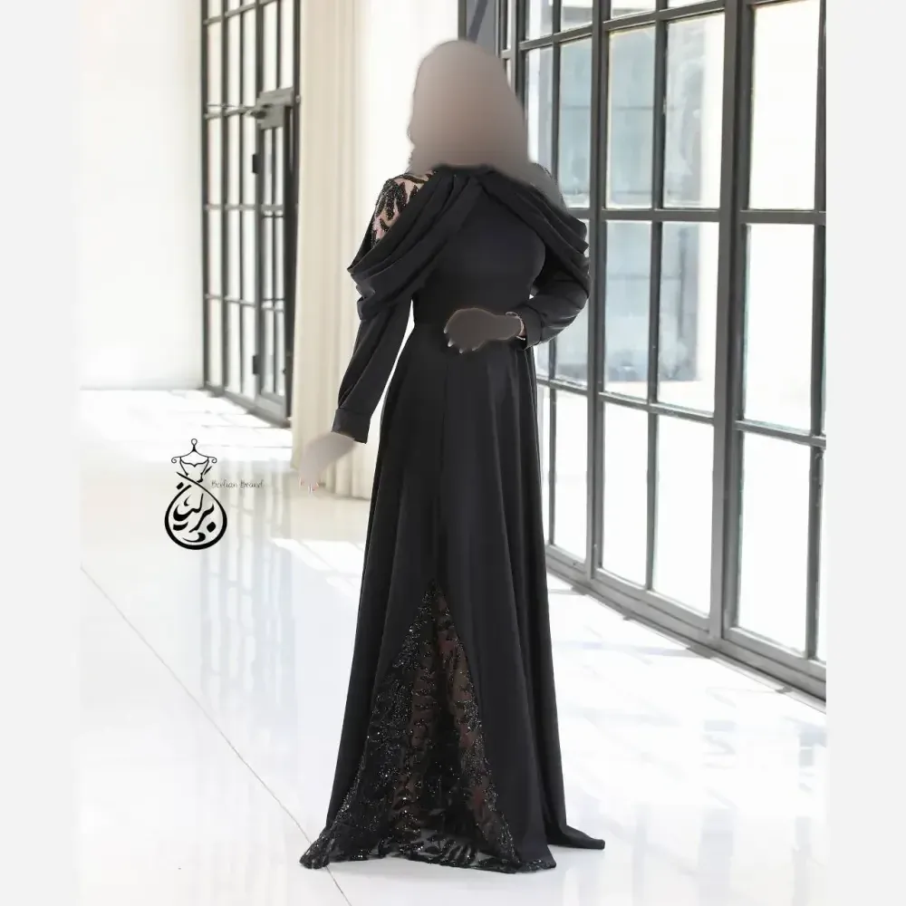 پیراهن مجلسی زنانه ارغوان حریر پولکی و گلدوزی شده ترک مشکی سایزبندی کامل