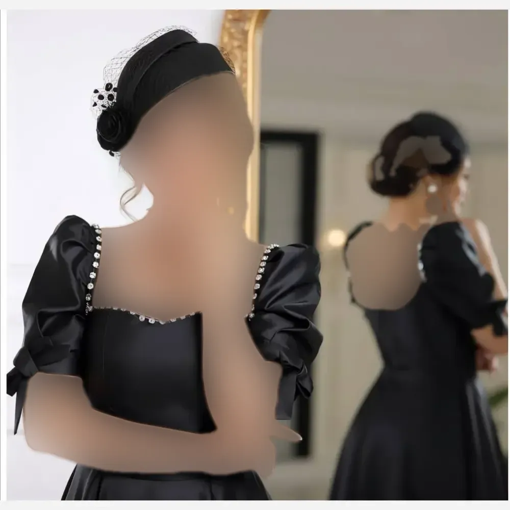 پیراهن مجلسی زنانه ملیله و منجوق دامن ساتن آمریکایی مشکی سایزبندی کامل