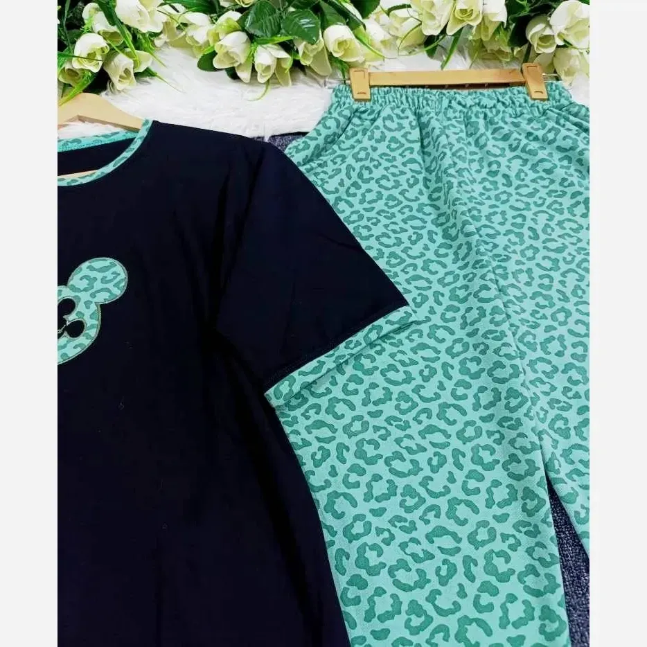 ست تیشرت و شلوار زنانه طرح پلنگی لویی ویتون جنس گلکسی پنبه فری سایز 38_48