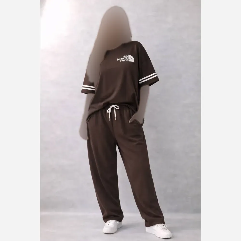 ست تیشرت و شلوار نخی پنبه نورث فیس فری سایز زنانه شیک و کاربردی
