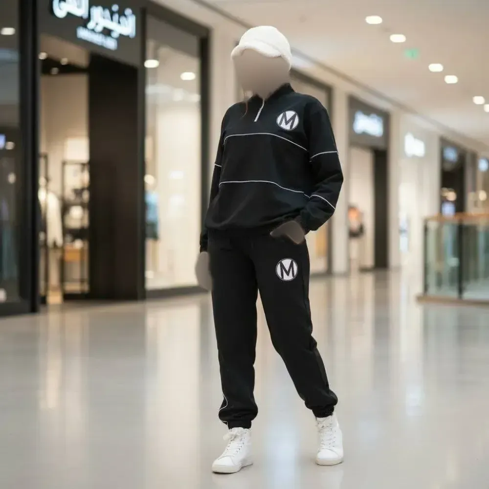 ست سویشرت شلوار زنانه مشکی فری سایز تا 46 جنس گلکسی پنبه با کیفیت عالی