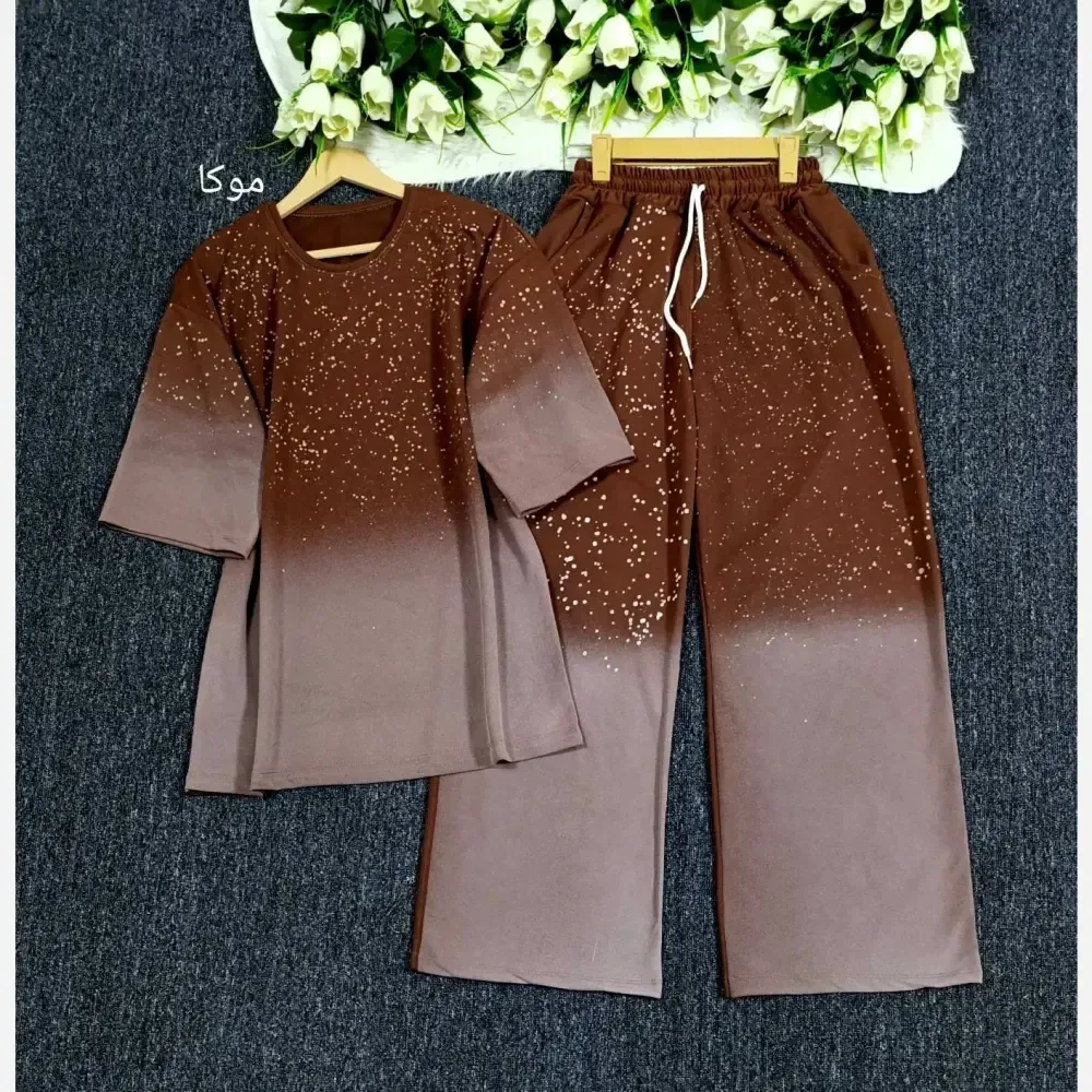 ست تیشرت شلوار کهکشان گلکسی نخ پنبه فری سایز زنانه | رنگبندی متنوع | شیک و با کیفیت