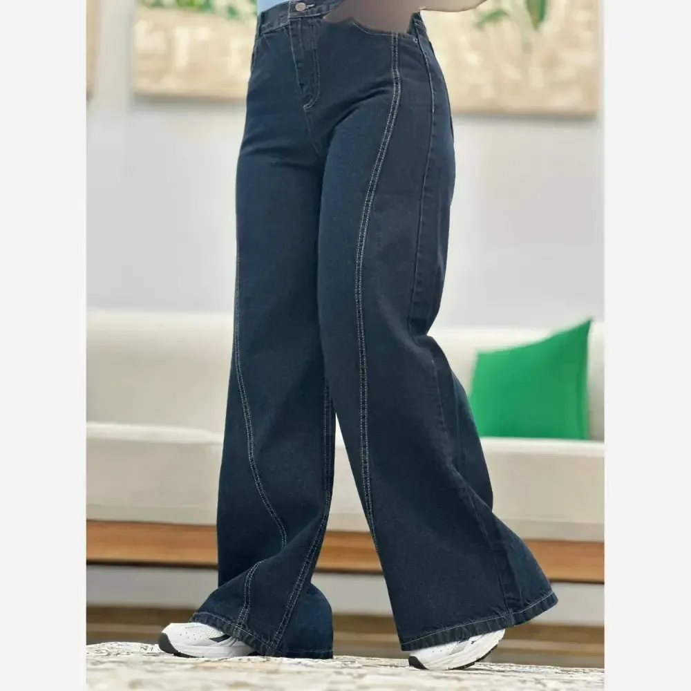 شلوار جین شافل ضخیم سنگشور شده سرمه ای زنانه سایزبندی کامل