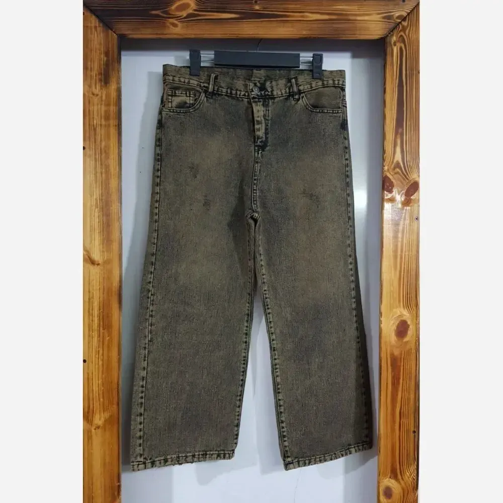 شلوار نیم بگ واید زنانه جین سنگشور شده طوسی و کرم سایز 38 تا 48