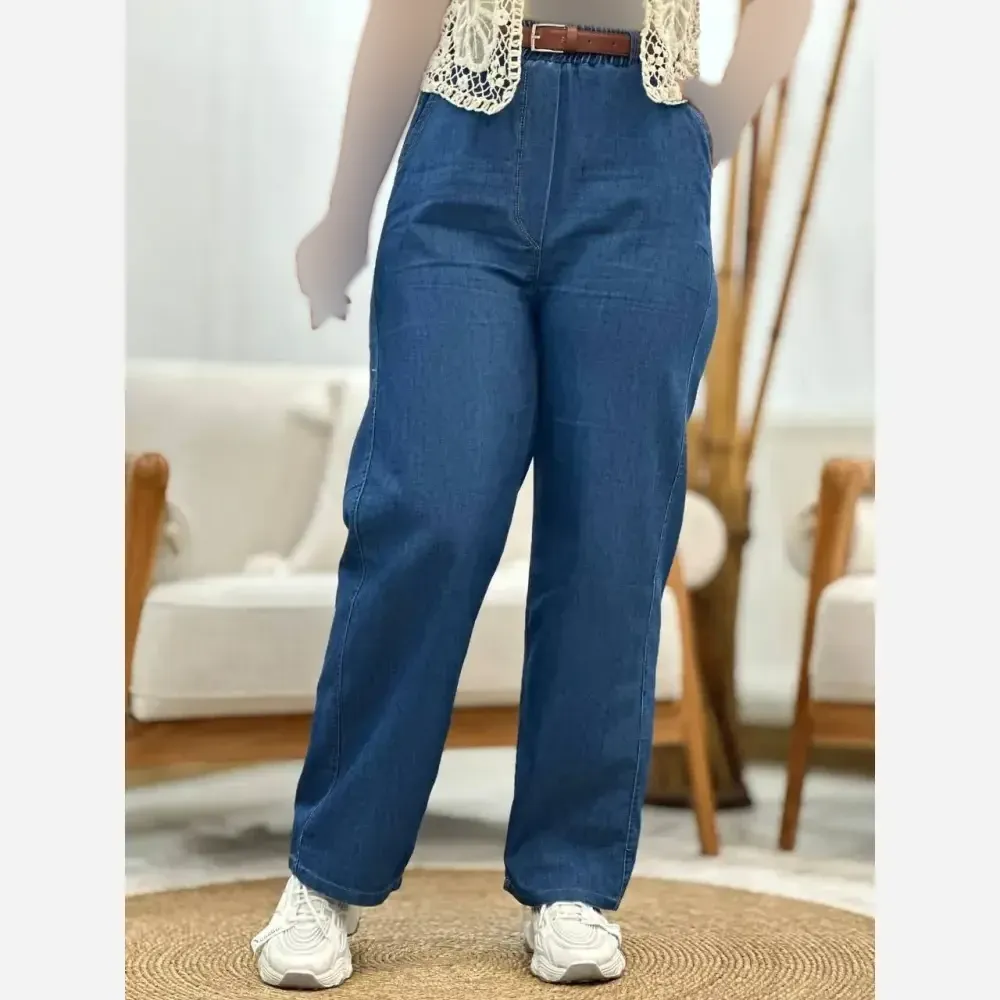 شلوار نیم بگ کاغذی جین اصل زنانه در رنگ های تیره و روشن، سایز 38 تا 44