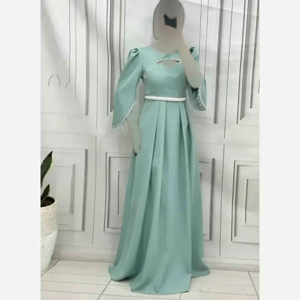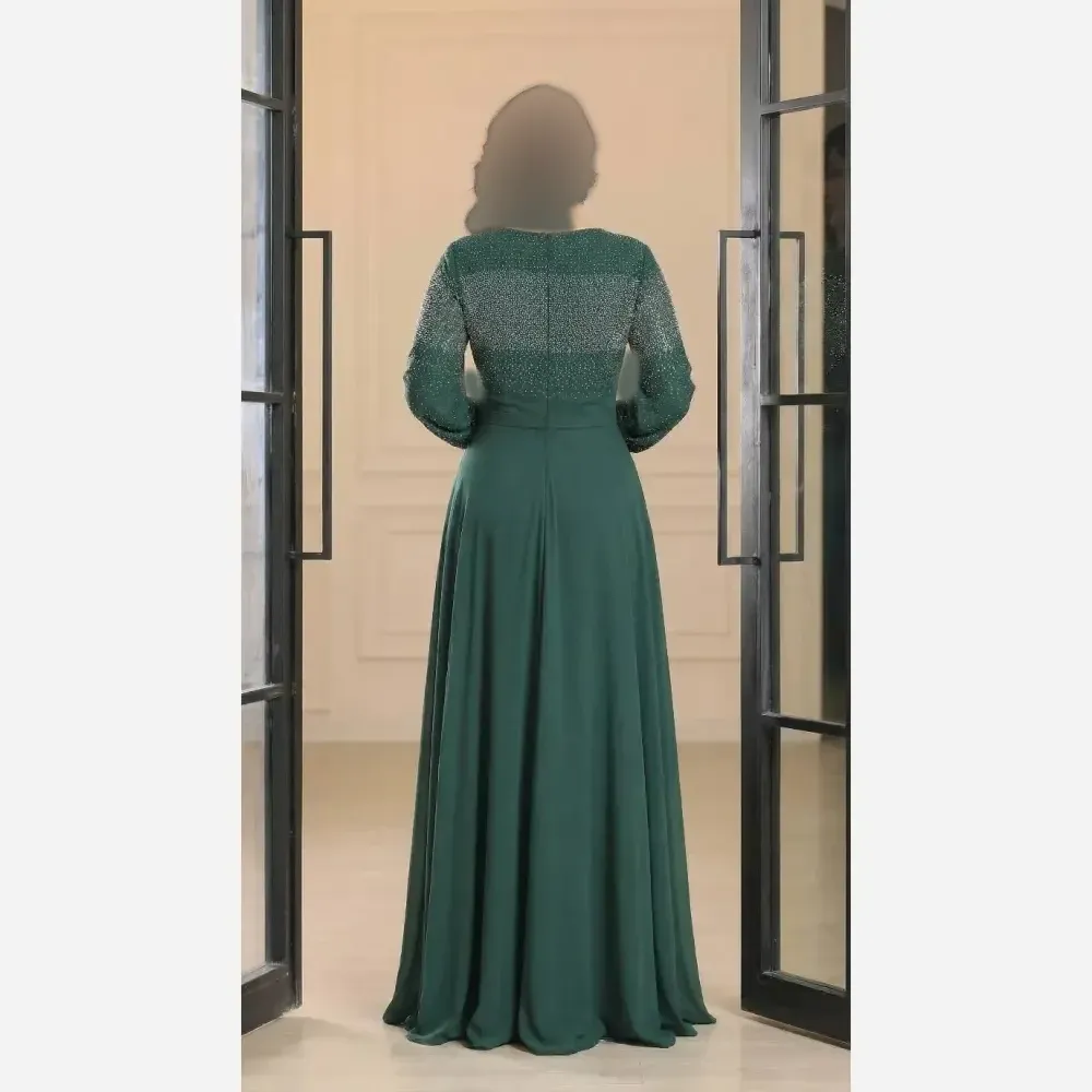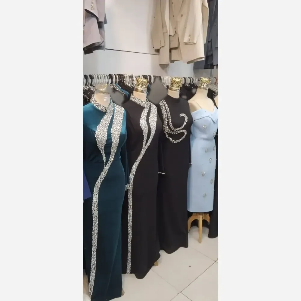 پیراهن مجلسی زنانه ساتن آمریکایی نگین دوزی شده سایزبندی کامل مشکی سبز یشمی چری
