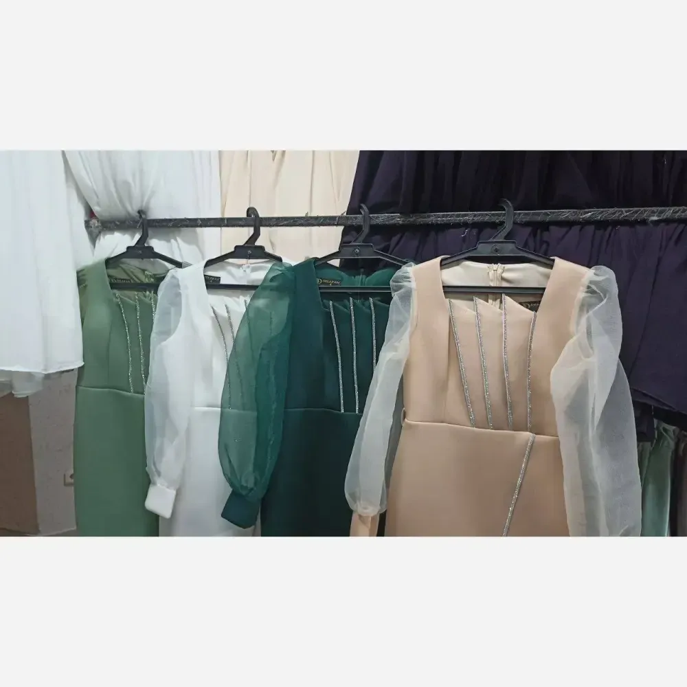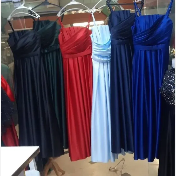 پیراهن مجلسی زنانه ساتن آمریکایی قد 160 سایزبندی کامل نقره ای فیروزه ای زرشکی