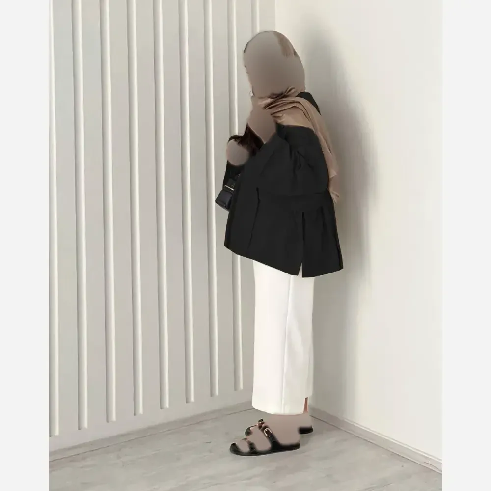 کت جلو بند دار طرح تیام لینن زنانه فری سایز کرم مشکی قد 72 بدون آبرفت