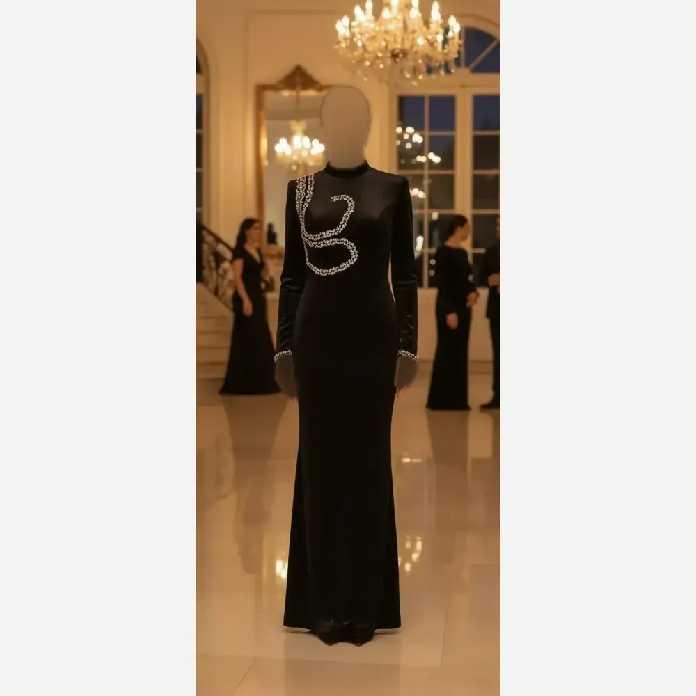 پیراهن ماکسی مجلسی نگینی شیک فری سایز غواصی قد 150 مشکی