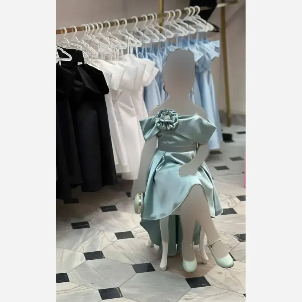 لباس دخترانه الینا ساتن سایزبندی 5 تا 13 سال مشکی پاستیلی آبی سفید