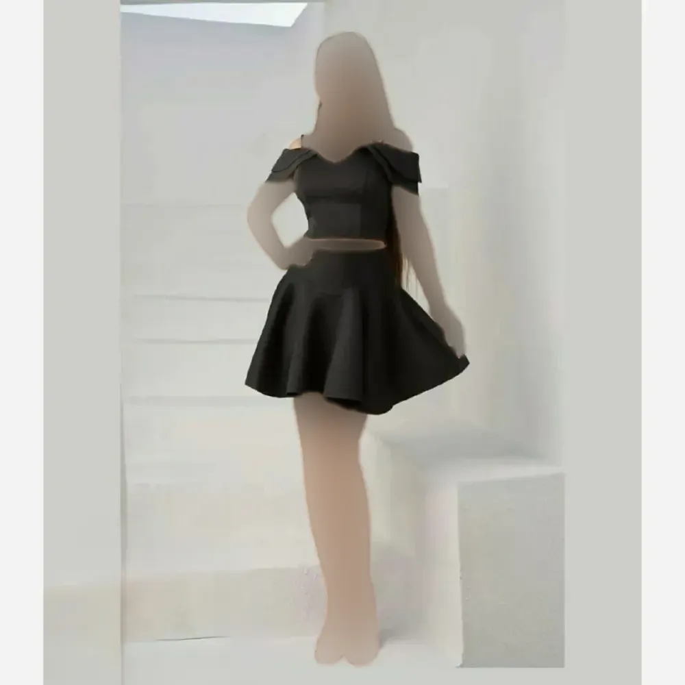 ست کراپ و دامن مجلسی فانتزی نیلو فری سایز مشکی گلاسکو اعلا