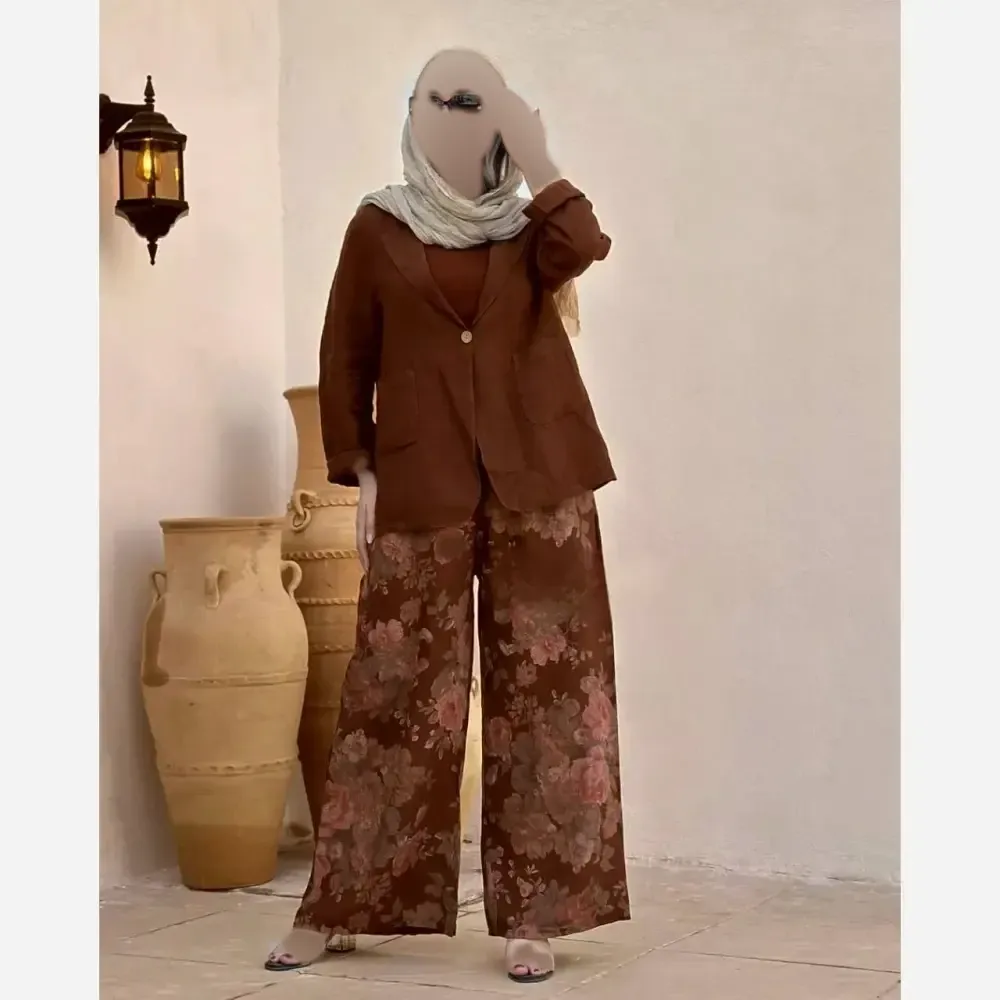 ست کفتان دیپلمات زنانه لینن کنفی فری سایز با کیف