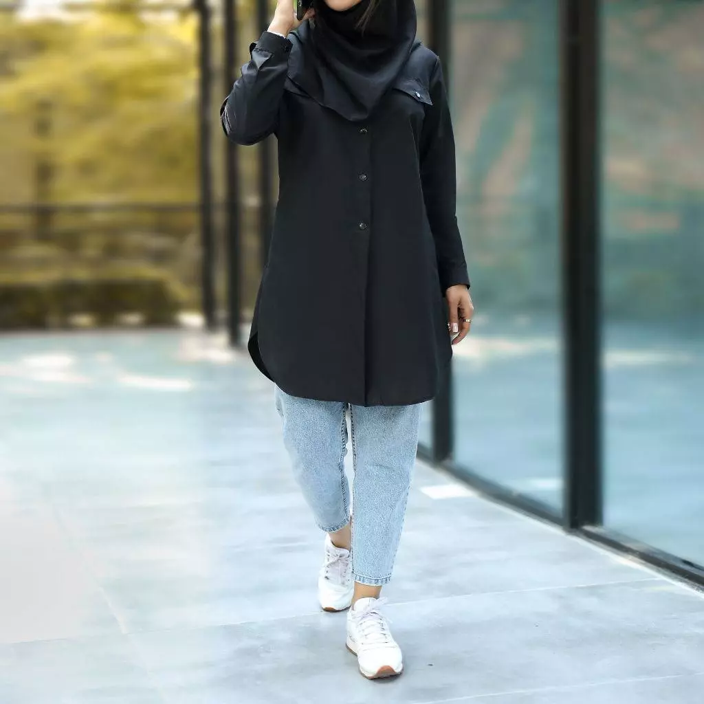 مانتو دانشجویی بلند سایز 36 تا 56 رنگ مشکی مانتو زنانه کفتانناموجود
