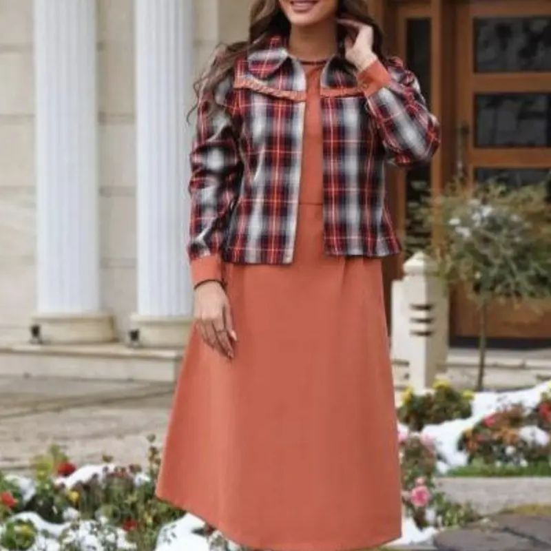 سارافون و کت چهارخونه جنس کتان سایز 36 تا 48