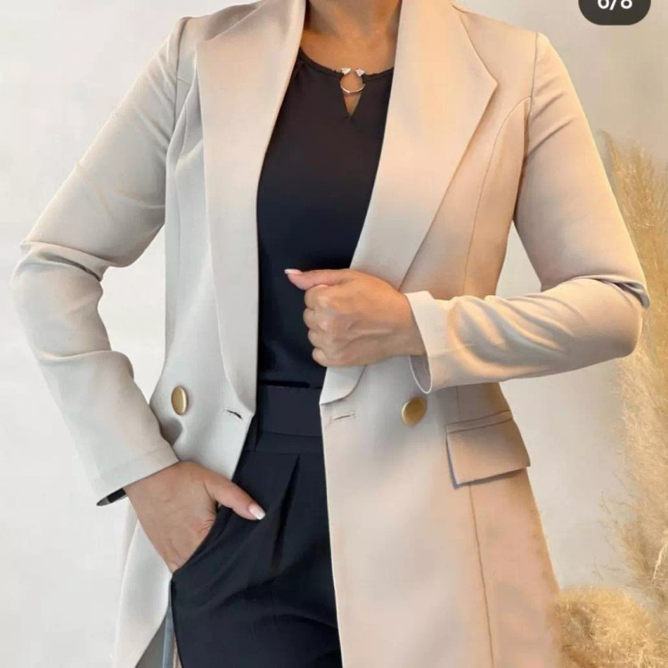 #️⃣شناسه کاربری : #6007 🖋نام : کت سوپر مازراتی آنیا 👚جنس : سوپر مازراتی گرم بالا لایه کوبی درجه یک ایستایی عالی💯 🌈رنگ بندی : مشکی , کرم , آبی_آسمانی , سبز , 📏سایزها : 36_38 , 40 , 42 , 44 , 46 , قیمت عمده پیوی 📝توضیحات : 🔥دوخت مزونی و درجه یک تضمینکیفیت🔥 🔥جلوی کار لایی کوبی شده 🔥یقه لایی کوبی شده 📏قد حدودا 85 🔮جیب فیلتاب 🔮دکمه دارد ارسال فوری