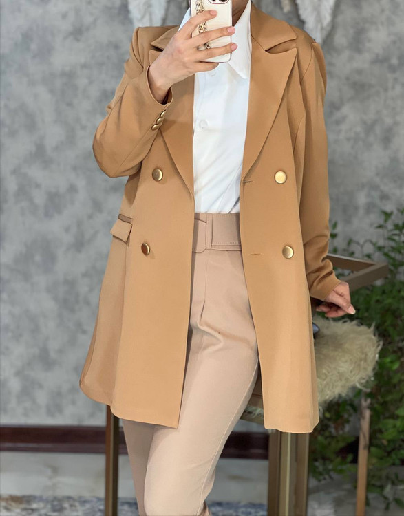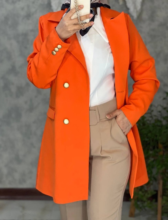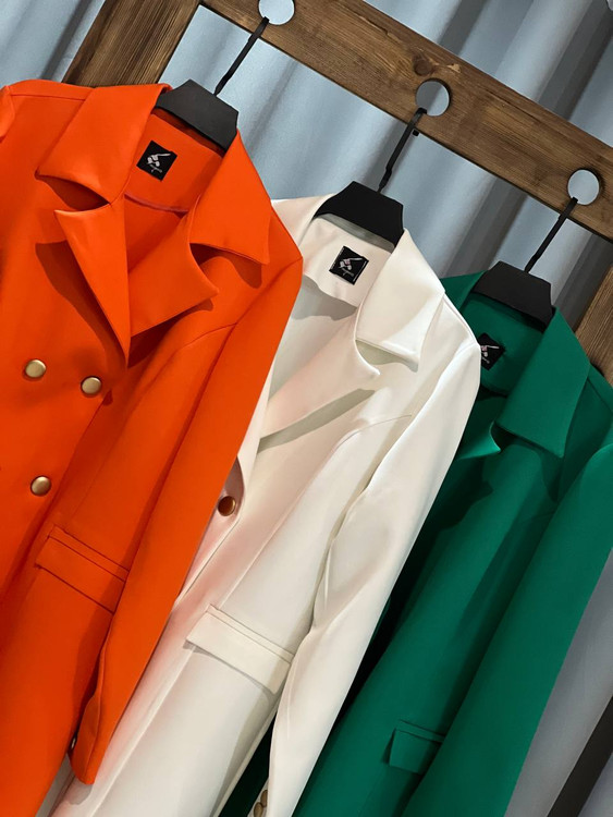 شناسه : #51549 نام : کت طرح دیناز جنس : مازراتی رنگ بندی : سبز, سرخابی, سفید, مشکی, آبی, نارنجی, کرم نخودی سایز ها : سایز دو معادل ۴۴ ۴۲, سایز سه معادل ۴۸ ۴۶, سایز یک معادل ۳۸ ۴۰ قد کار حدودا ۸۵ سانتیمتر و دکمه های جلوی لباس کاربردی هستن