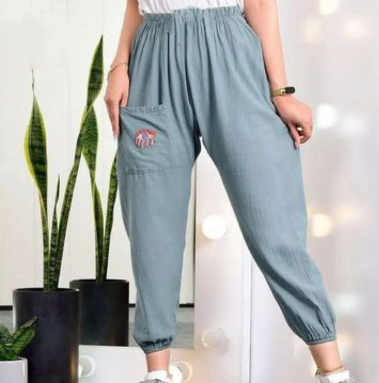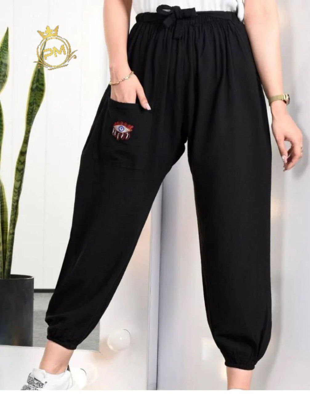 🆔 شناسه : #47473 👚نام : شلوار اسلش کنفی 👗دور کمرتا۹۴دور باسن۱۰۸ قد۹۰مچ کشدار جیب کاربردی گلدوزی شده -مرغک دار 🧵جنس : الیاف طبیعی کنفی با کیفیت بدون آبرفت 🖌 رنگ بندی : مشکی - خردلی - سبز - طوسی - سفید - کرم - ⚜️ سایز ها : فری سایز از ۳۶تا۴۶