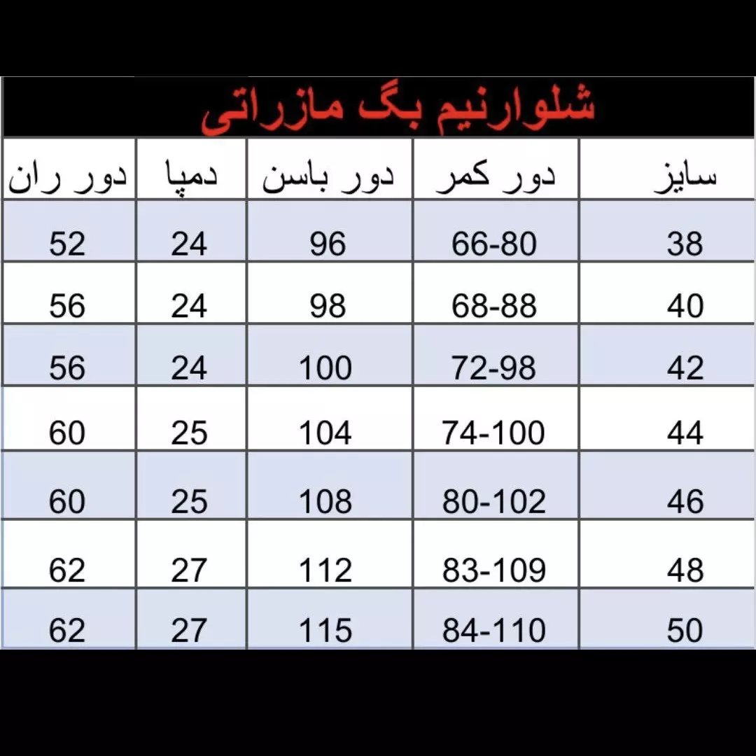 شلوار زنانه نیم بگ مازراتی سایز 50 تا 60 ارسال رایگان شلوار زنانه سایز بزرگ