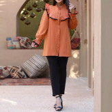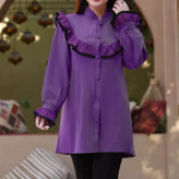 شومیز زنانه قد 85 خرجکار سوزن دوزی بنفش سفید آجری