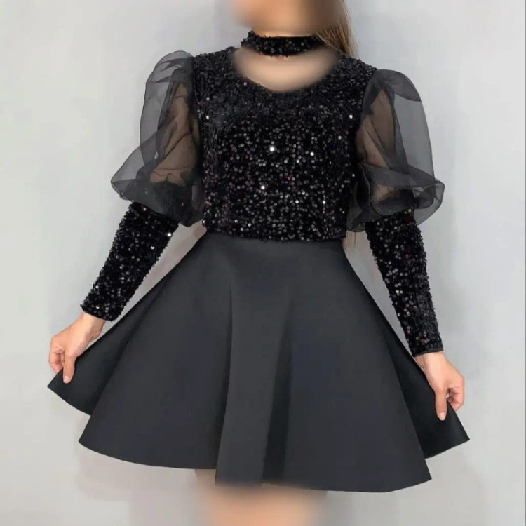 لباس مجلسی دخترانه کوتاه عروسکی سایز 36 تا 50 سارافون زنانه پولک و ساتن