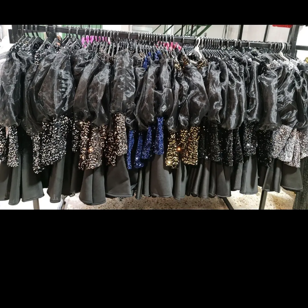 لباس مجلسی دخترانه کوتاه عروسکی سایز 36 تا 50 سارافون زنانه پولک و ساتن