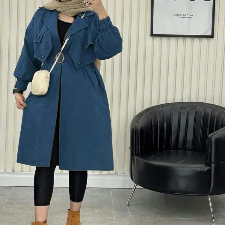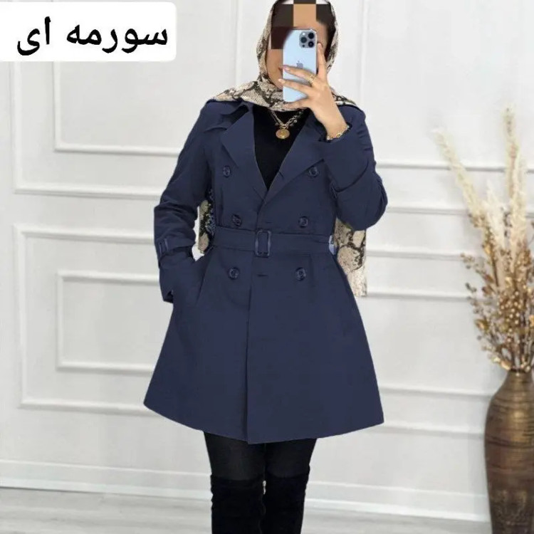 بارانی زنانه از سایز 38 تا 66 کمربند دار جنس کتان مدل بی تا