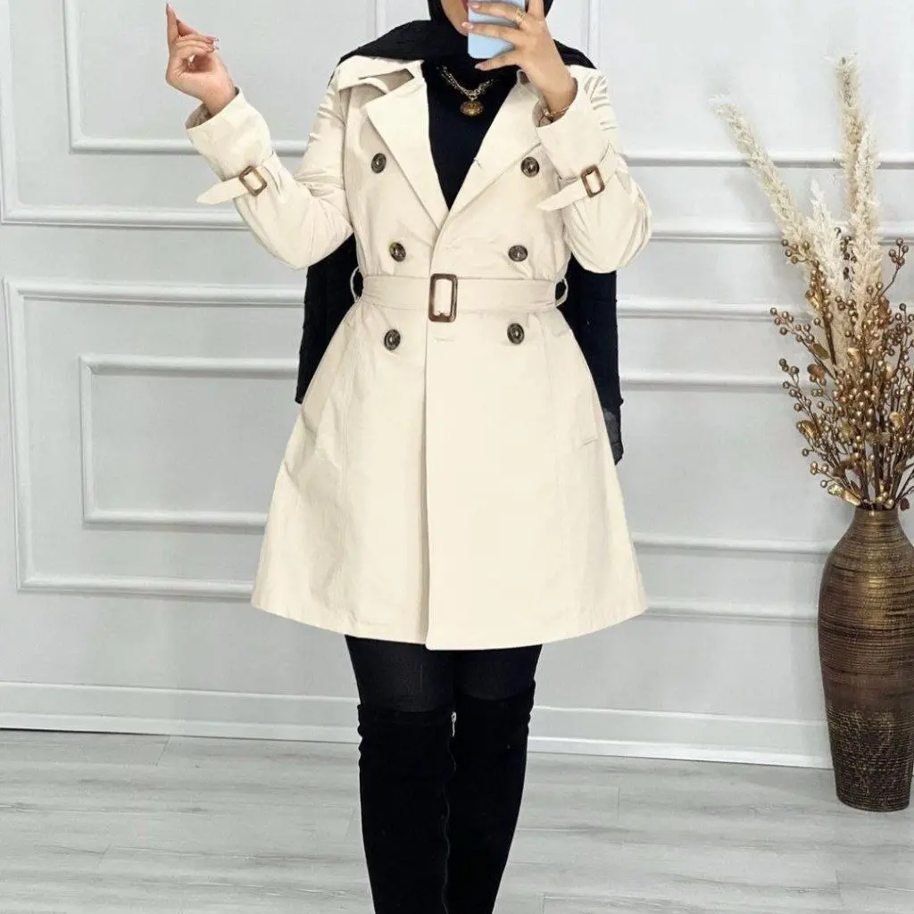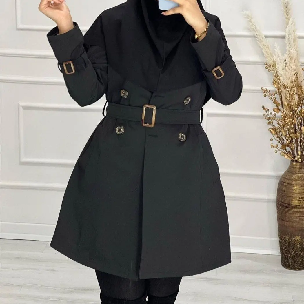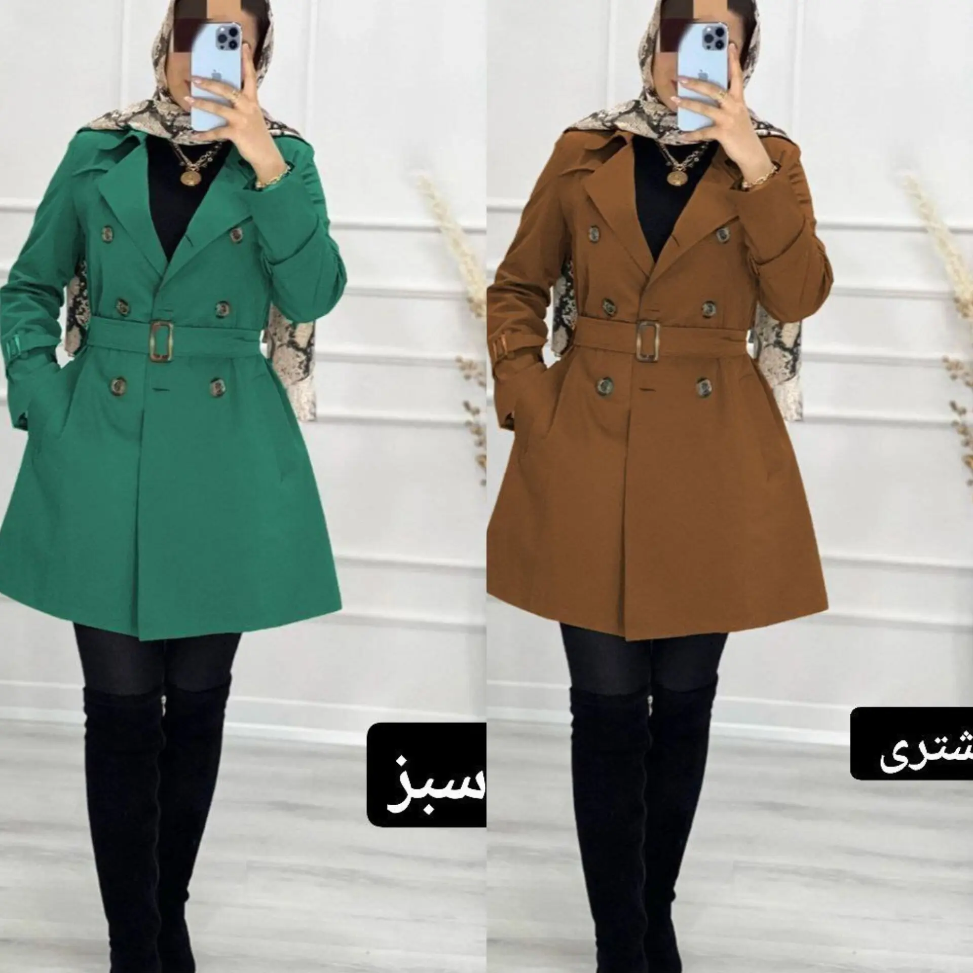 بارانی زنانه از سایز 38 تا 66 کمربند دار جنس کتان مدل بی تا