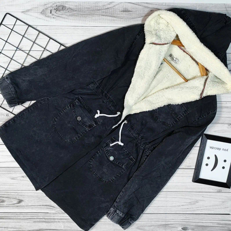 کاپشن زنانه جین ترک خز دار زمستانه سایز 40 تا 48 پالتو ترک