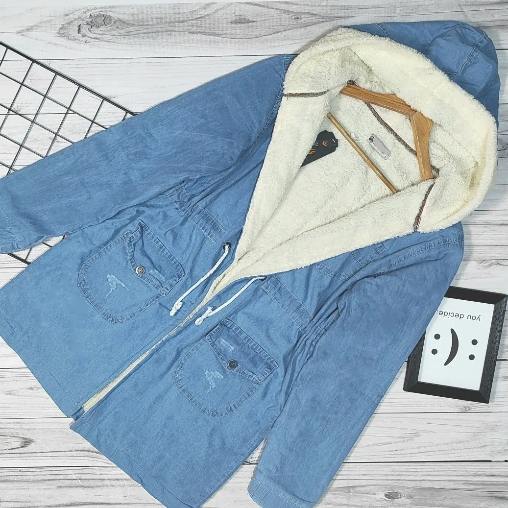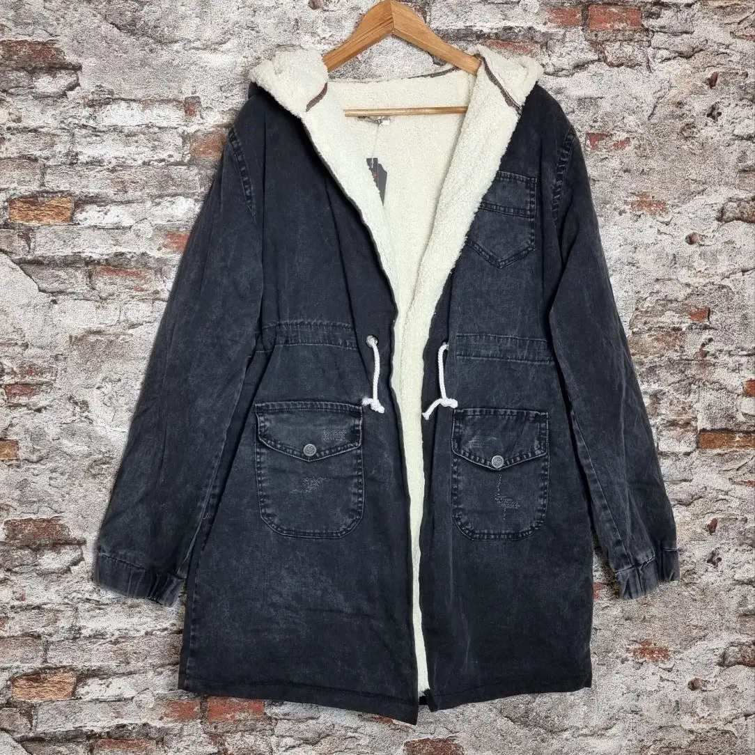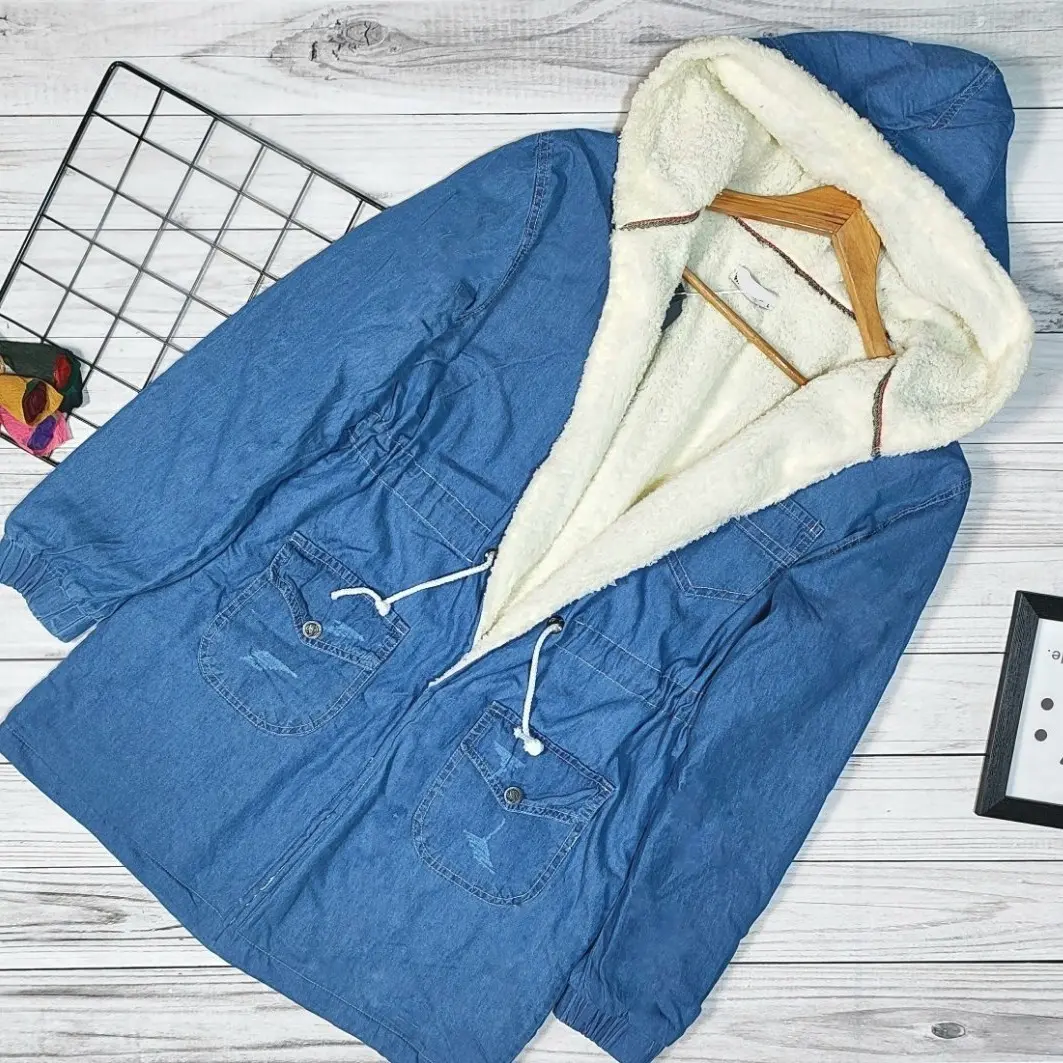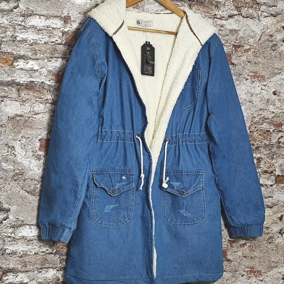 کاپشن زنانه جین ترک خز دار زمستانه سایز 40 تا 48 پالتو ترک