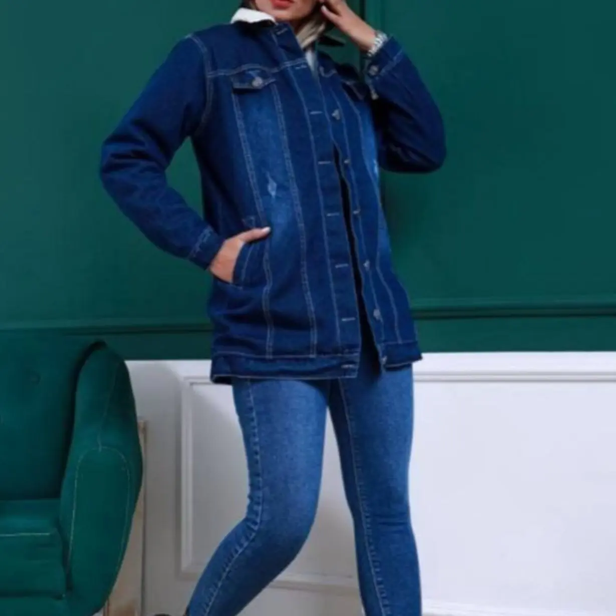 کاپشن زنانه جین ترک سایز 36 تا 46 قد 85 کاپشن جین