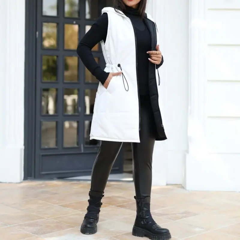 پافر زنانه سایز بزرگ دورو مشکی سفید سایز 38 تا 56 پافر سایز بزرگ پافر بلند زنانه