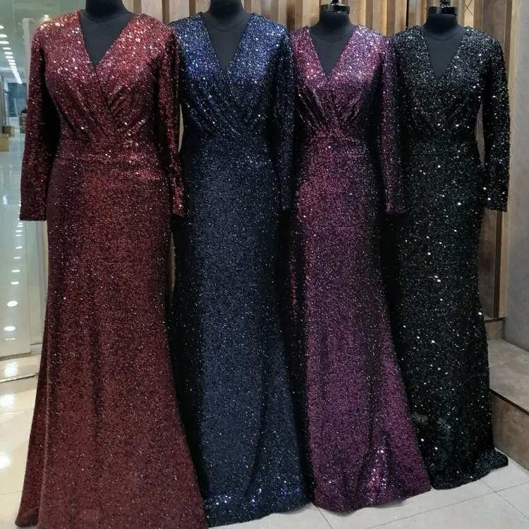 لباس مجلسی بلند زنانه ماکسی مجلسی پوشیده فرمالیته نامزدی عقد سایز 36 تا 50 قد 160 خرید ماکسی مجلسی زنانه سیبل پولک ریز