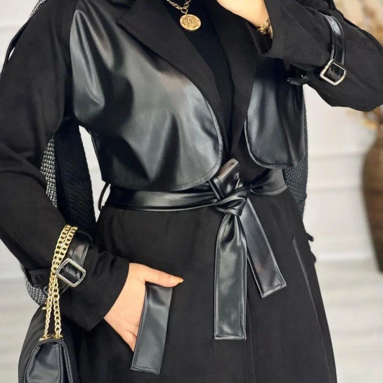 پالتو زنانه بلند ارغوان چرم و سوییت سایز 36 تا 50
