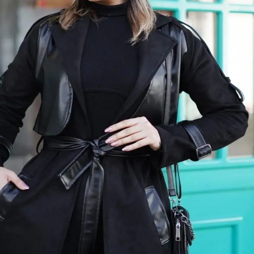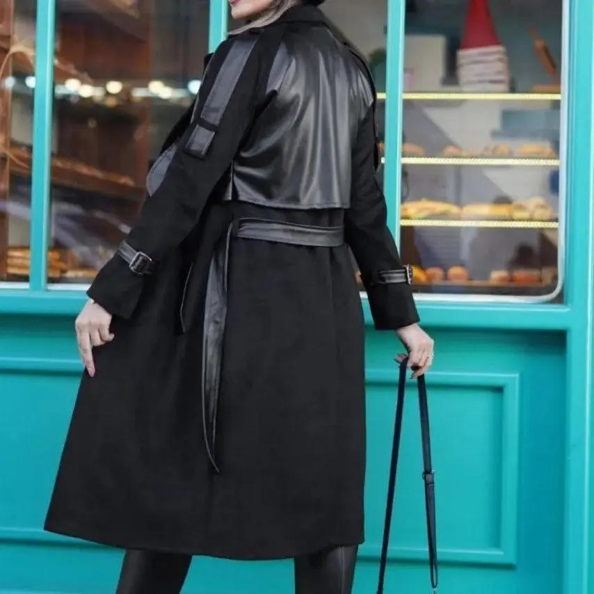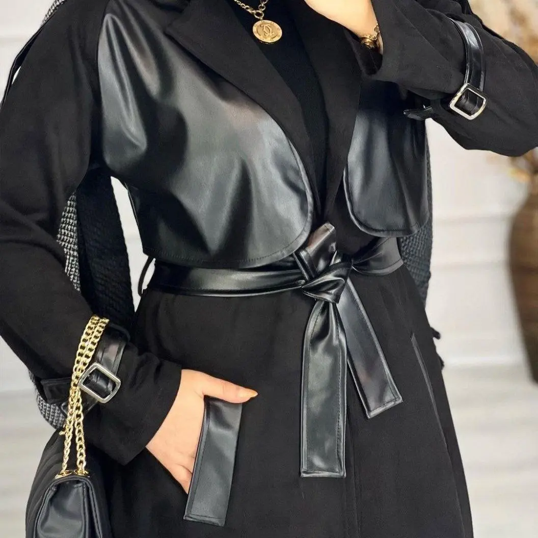 پالتو زنانه بلند ارغوان چرم و سوییت سایز 36 تا 50