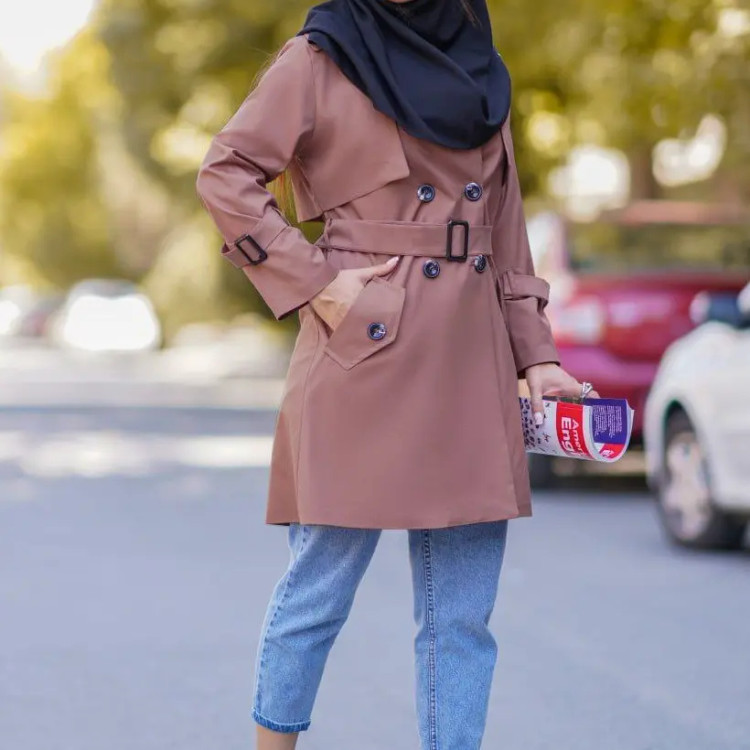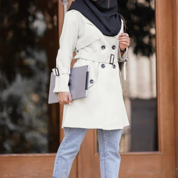 بارانی زنانه کوتاه کمربند دار سایز 36 تا 48