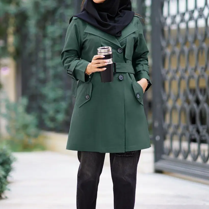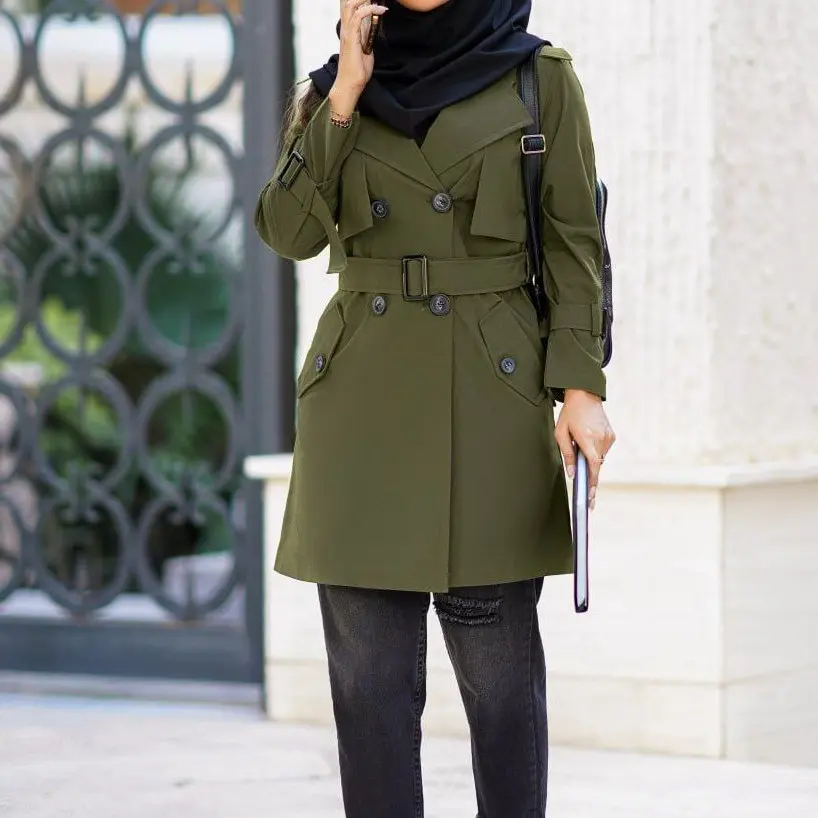بارانی زنانه کوتاه کمربند دار سایز 36 تا 48