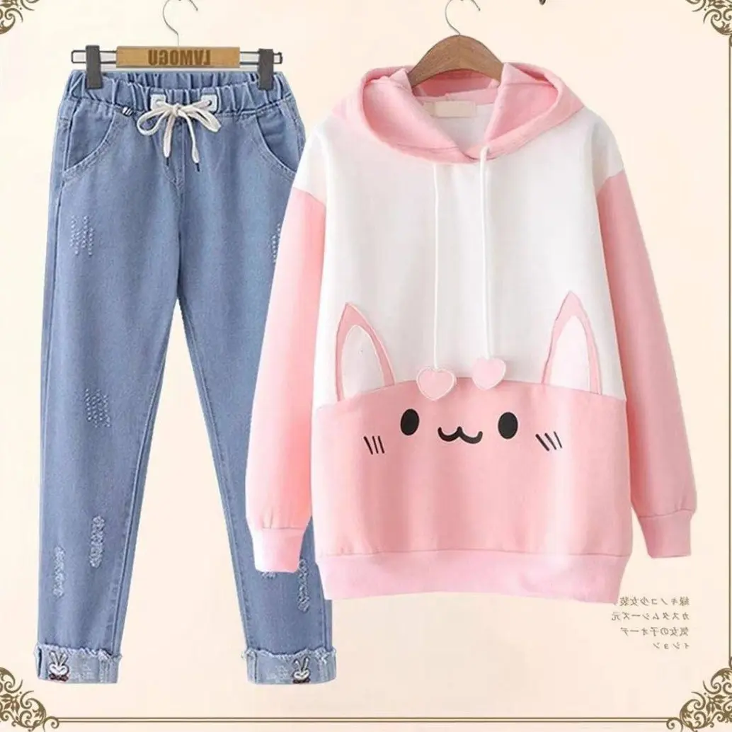 هودی دورس تو کرک ضخیم دخترانه طرح گربه مشکی زرد صورتی ارسال فوری و رایگان