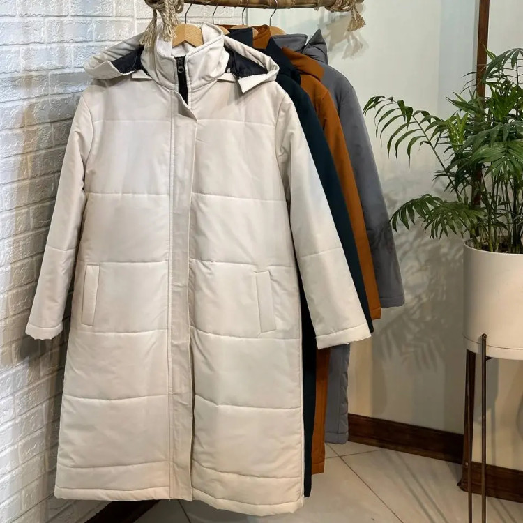 کاپشن بلند داخل پشم شیشه 200 گرمی آستر دوزی کلاه با زیپ جدا میشه فری سایز 36 تا 52