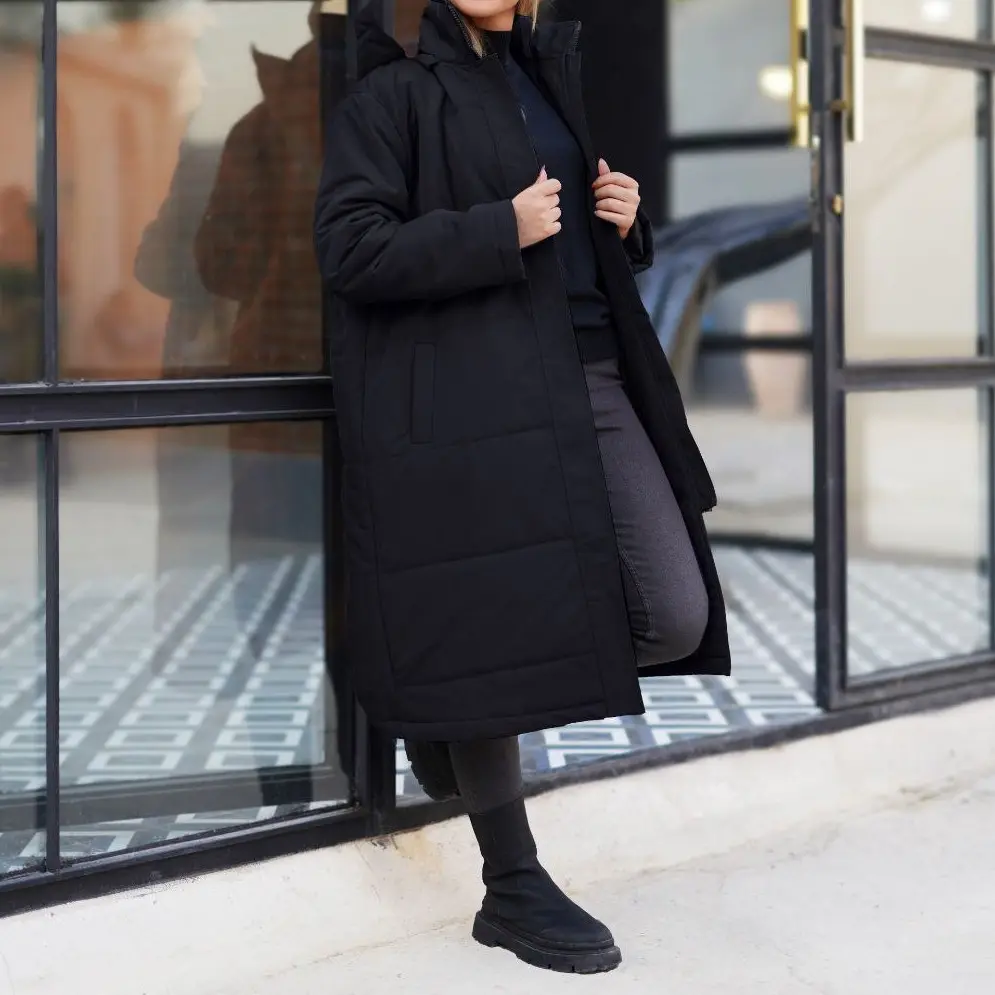 کاپشن بلند داخل پشم شیشه 200 گرمی آستر دوزی کلاه با زیپ جدا میشه فری سایز 36 تا 52