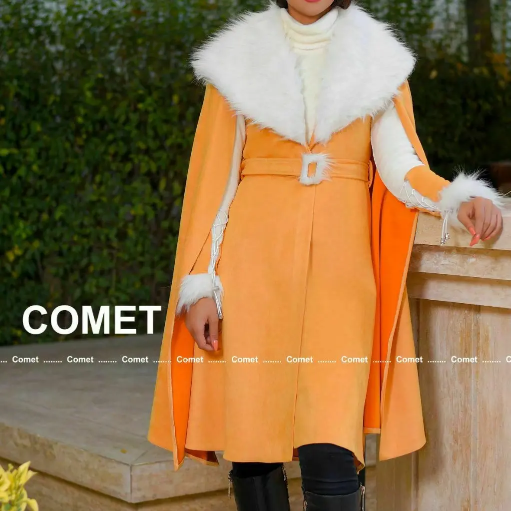 پالتو زنانه سوئیت سایز 36 تا 60 شنل زنانه رنگبندی ژورنال پالتو زنانه یقه خز دار زمستانه