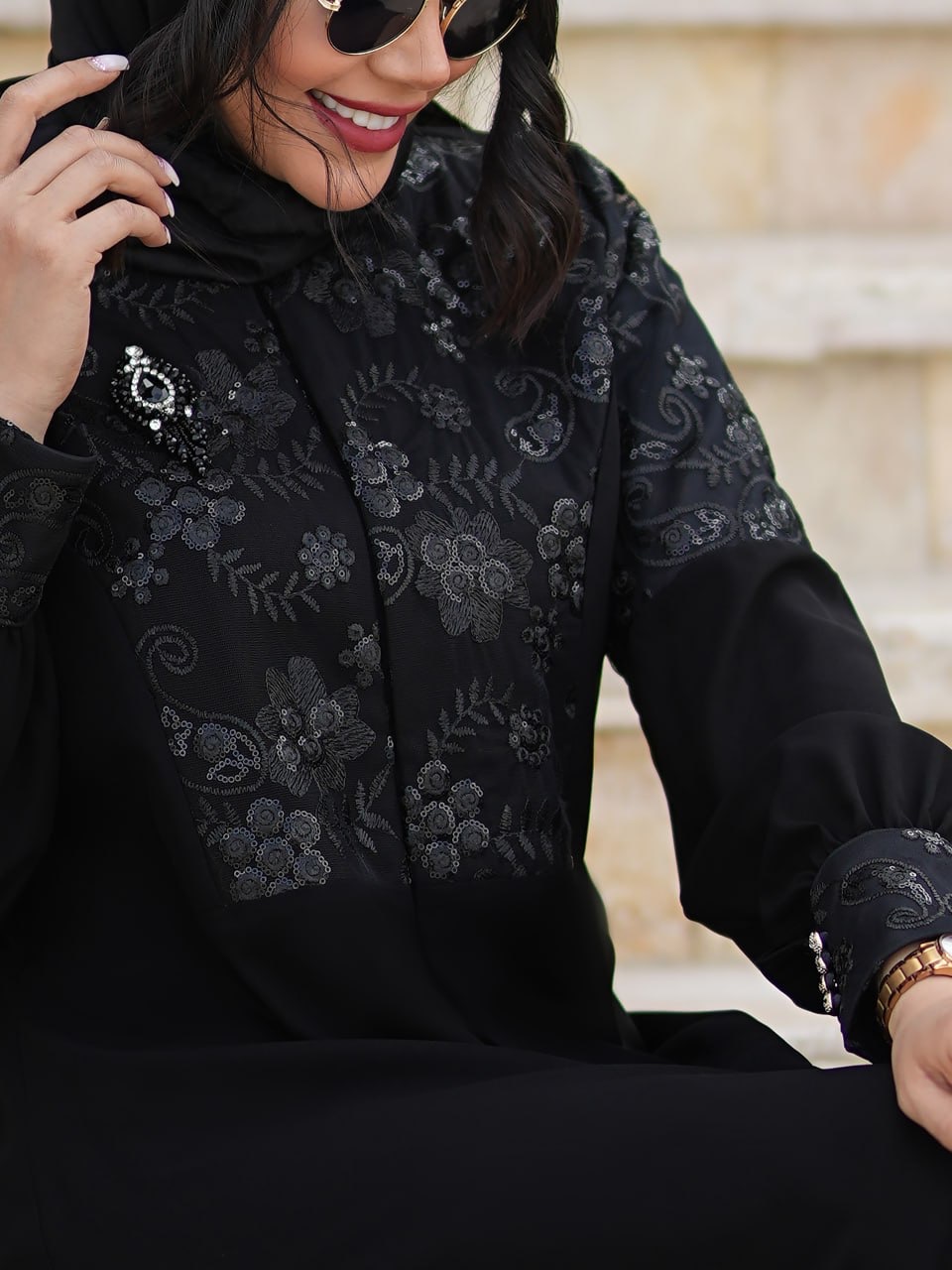 کرپ حریر کره ای درجه یک + گلدوزی منجوق پولکی + گلسینه