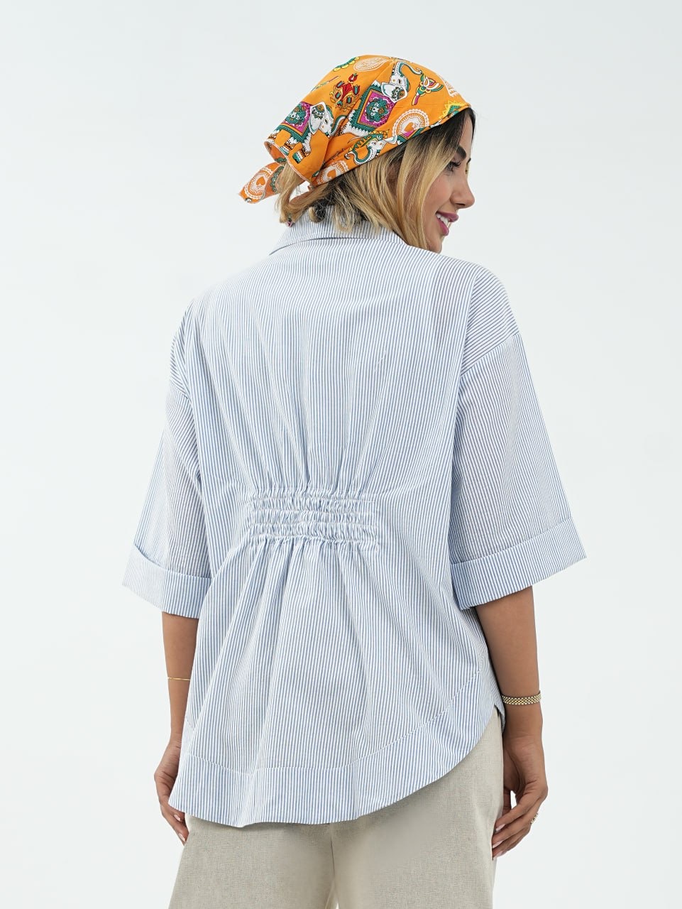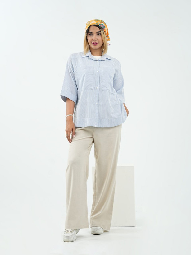 این مدل شومیز مانتویی با دو مدل پارچه تولید شده است