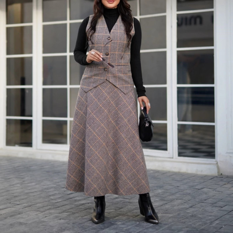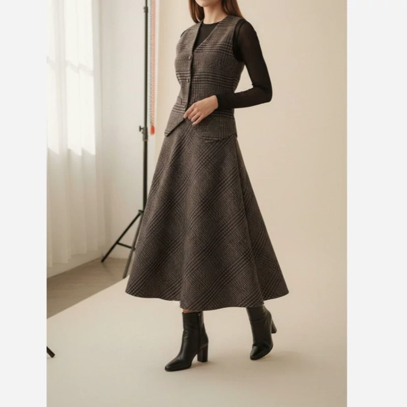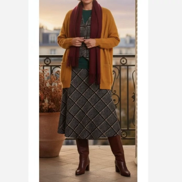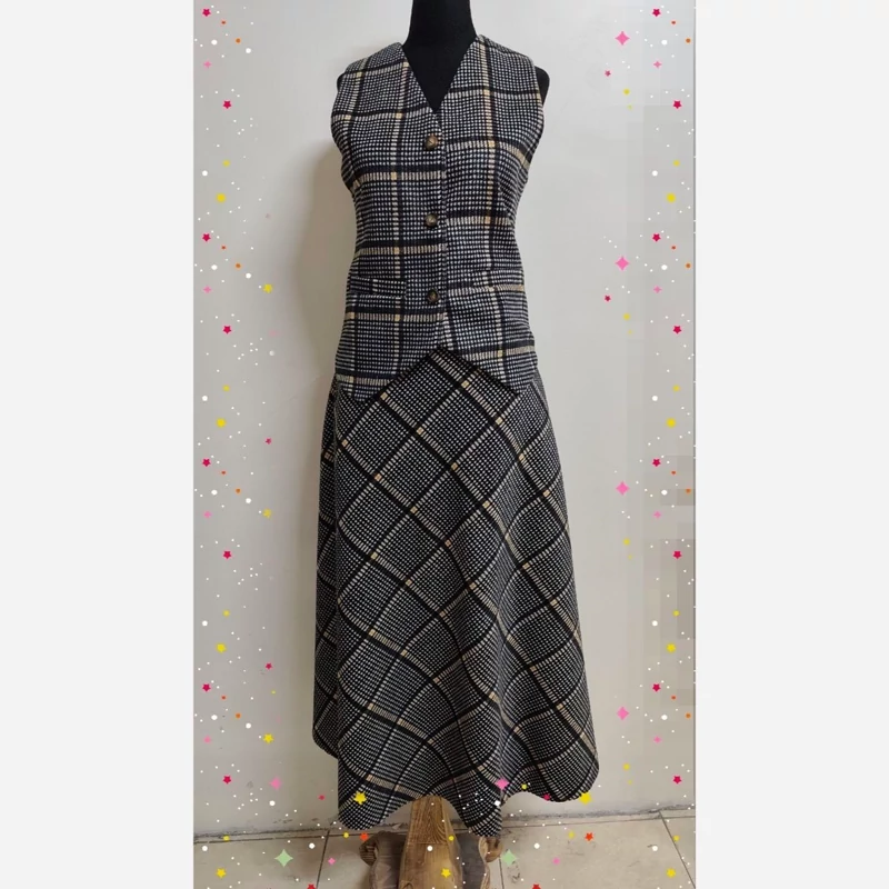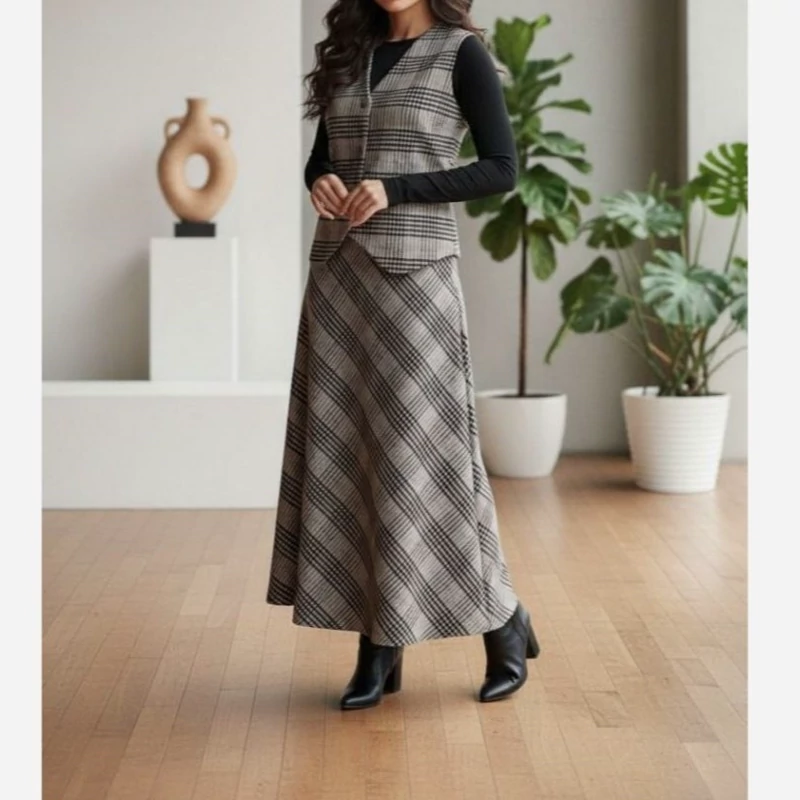 🍁 کالکشن پاییزه و زمستان 1404 👗 ژیله دامن مدل ایراندخت (ژیله کامل آستر کشی شده) (دامن تا زانو آستر کشی شده) 🧵 پارچه فوتر چهارخانه درجه یک 🪪 کد 784 🌻 سایزبندی 1(38,40,42)2(44,46,48) 🎨 چهار رنگ طبق ژورنال 📏 قد دامن تا پایین کار 93 قد ژیله از قسمت جلو 55 قد ژیله از پشت 60