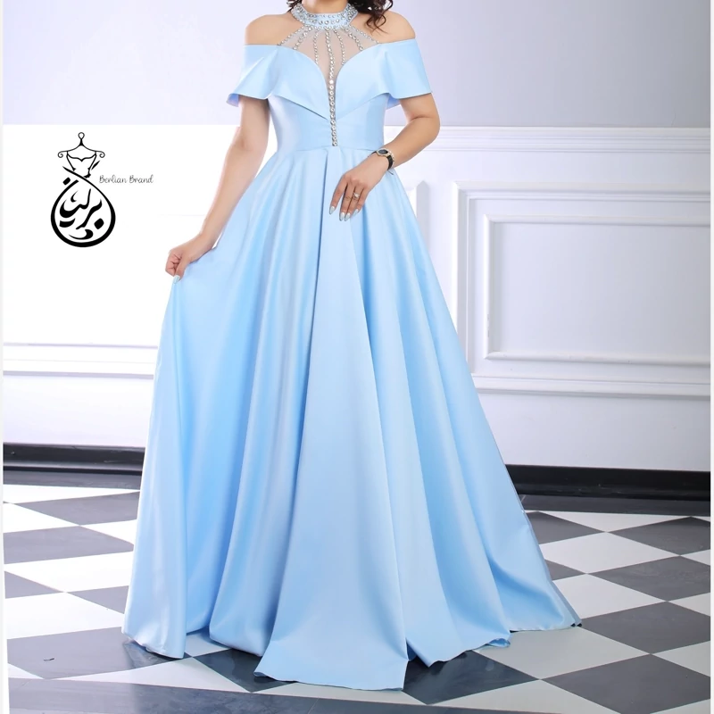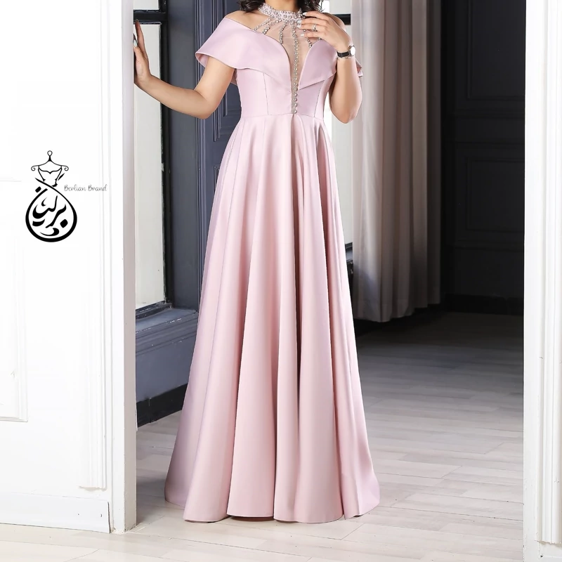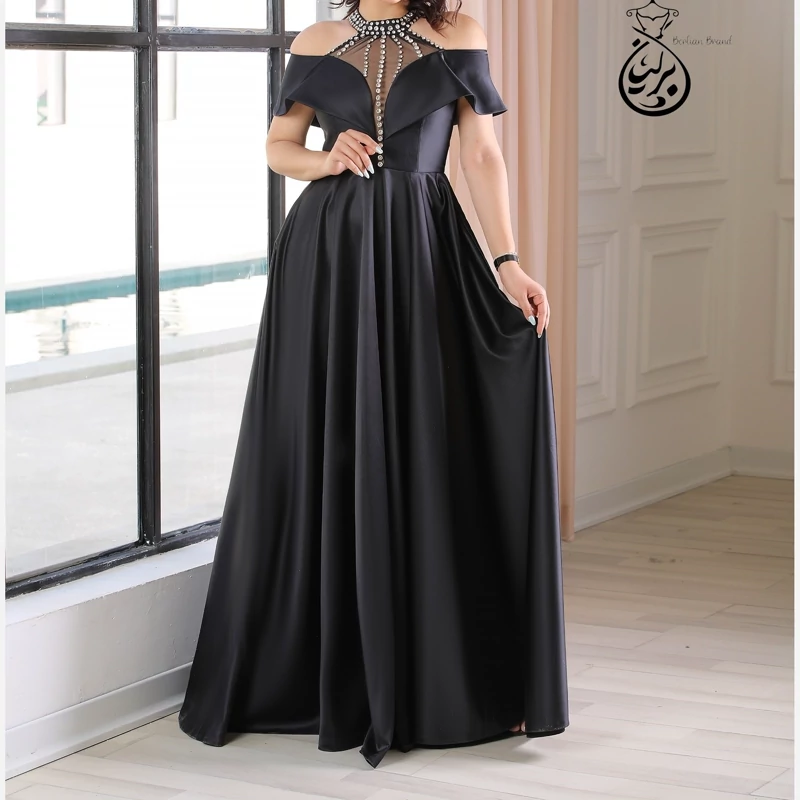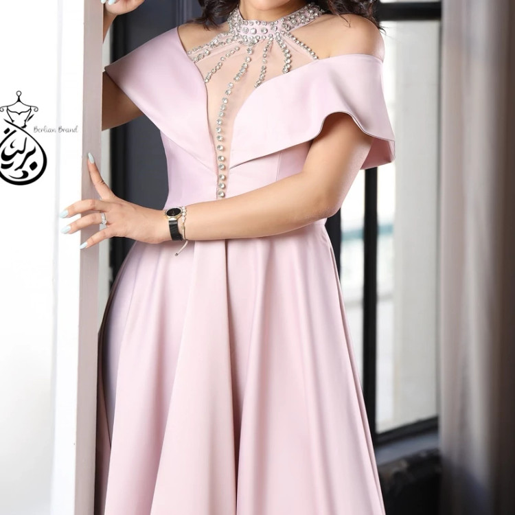 لباس مجلسی نهال جنس ساتن آمریکایی نگین دوزی شده
