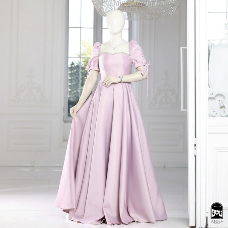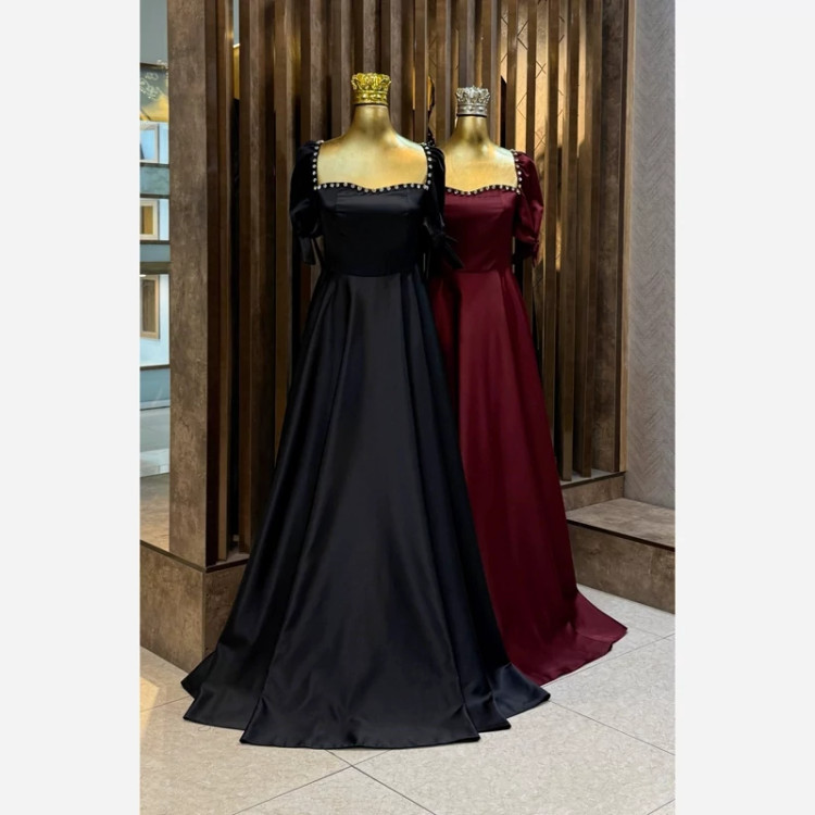لباس مجلسی زنانه ماکسی مدل نبات ساتن آمریکایی نگین دوزی