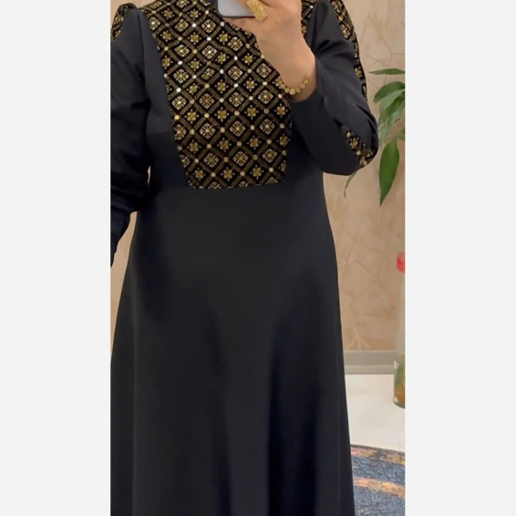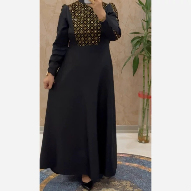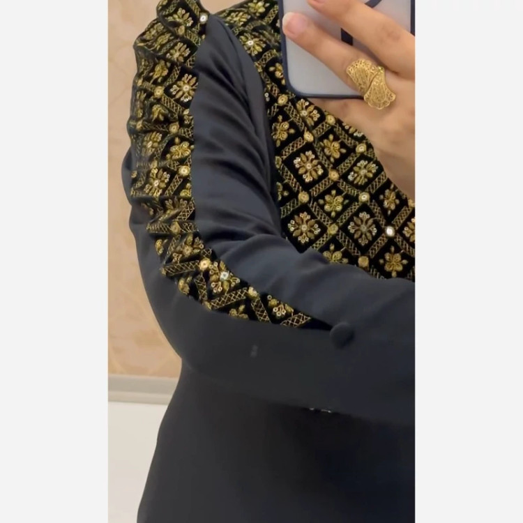 #️⃣شناسه کاربری : #5552 🖋نام : ماکسی پیراهنی مدل رومی سوزندوزی شده کوثر🌺 👚جنس : مازراتی ایتالیایی گرم بالا واعلا با خرجکار مخمل سوزن دوزی شده👌 🌈رنگ بندی : مشکی , 📏سایزها : 1(42-44) , 2(46-48) , جمالان 📝توضیحات : قد کار 145 پشت کار زیپ میخورد