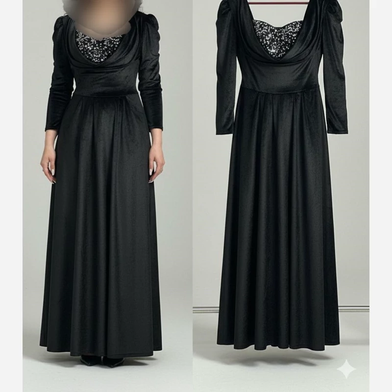 #️⃣شناسه کاربری : #9949 🖋نام : پیراهن مدل انگلیسی زیبا دلارام 👚جنس : مخمل انگلیسی و خرجکار پولک ترکی 🌈رنگ بندی : مشکی , سبز , زرشکی , سورمه-ای , 📏سایزها : 2(40-42) , 3(44-46) , 4(48-50) جمالان 📝توضیحات : پشت کار زیپ میخورد قد 155