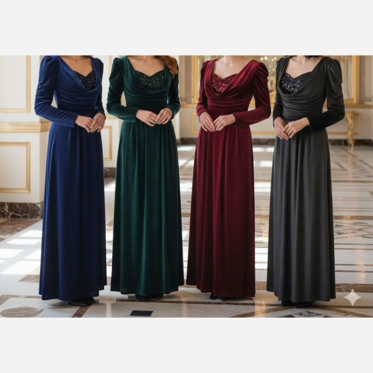 پیراهن زیبا ومخملی مدل انگلیسی با کیفیت بالا استایلی زیبا ومجلسی سایز 36تا50 تنوع رنگ داره
