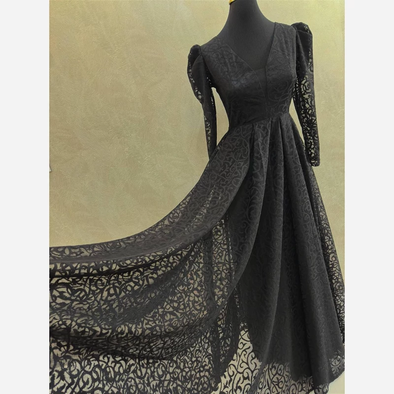 👚جنس : گیپور 🌈رنگ بندی : مشکی , 📏سایزها : 1(36-38) , 2(40-42) , 3(44-46) , 4(48-50) , 📝توضیحات : قد کار 160 5 متر پارچه استفاده شده از کلوشی دامن هیچی کم نزاشتیم😊