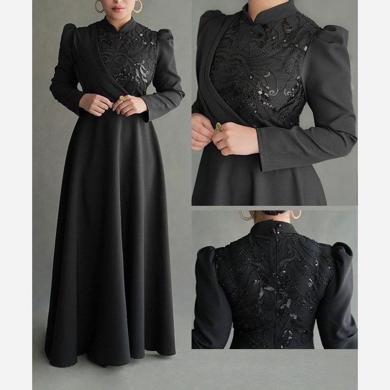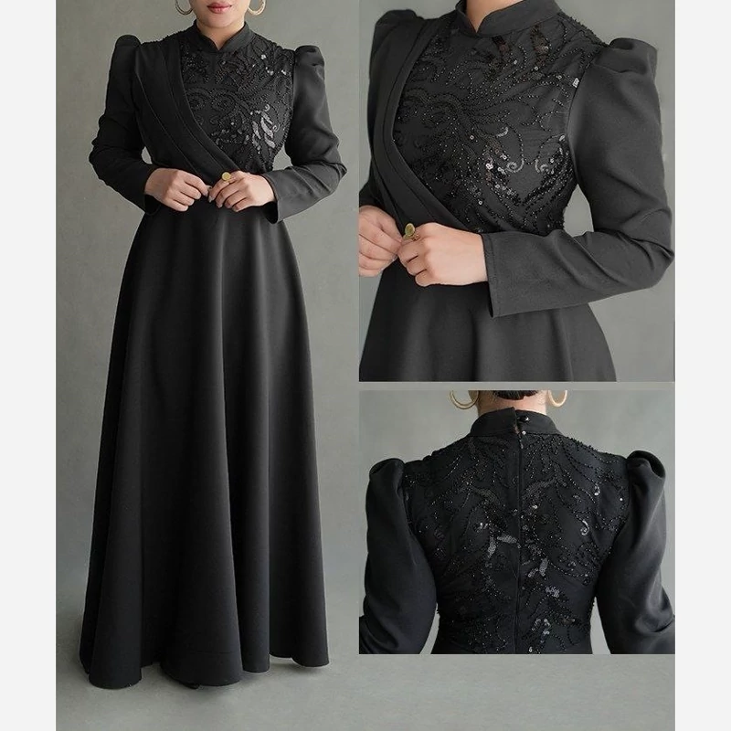 #️⃣شناسه کاربری : #9034 🖋نام : الیزابت ❣ 👚جنس : مازراتی اعلا و دانتل مهره دوزی شده👌 🌈رنگ بندی : مشکی , 📏سایزها : 1(38-42) , 2(44-46) , 3(48-50) , 📝توضیحات : قد کار 160